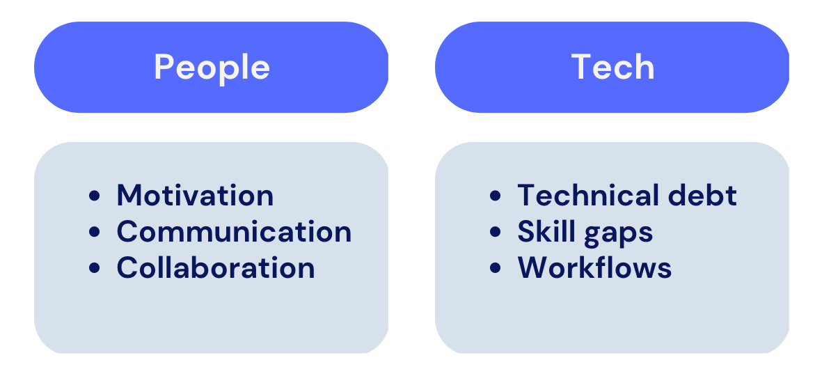 Most of the issues that engineering teams face fall into one of two categories: people or tech.
